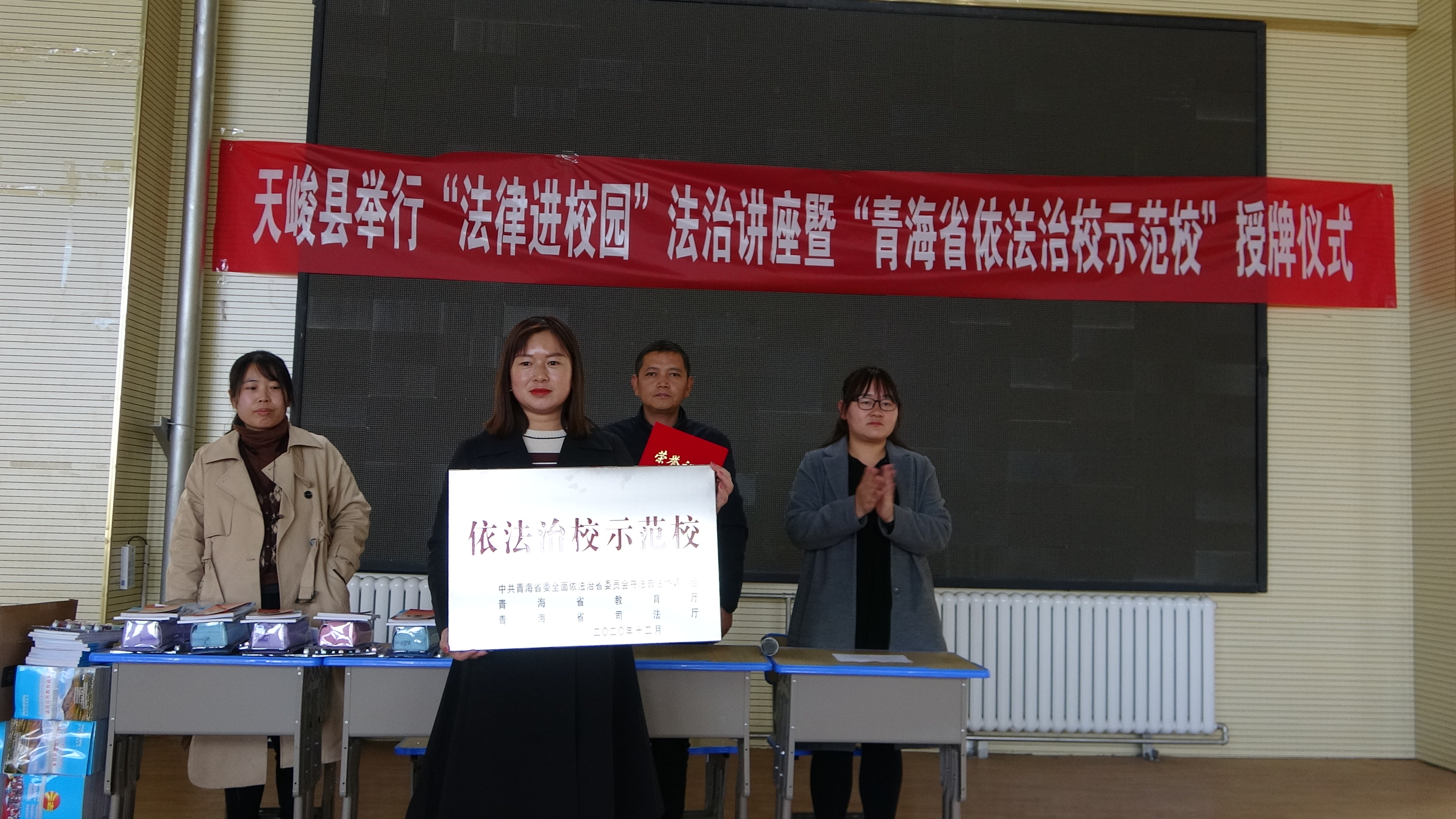 天峻县举办“法律进校园”法治讲座暨“青海省依法治校示范校”授牌仪式
