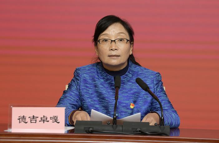 主持人:自治区党委宣传部副部长、自治区人民政府新闻办公室主任 德吉卓嘎。记者潘多摄