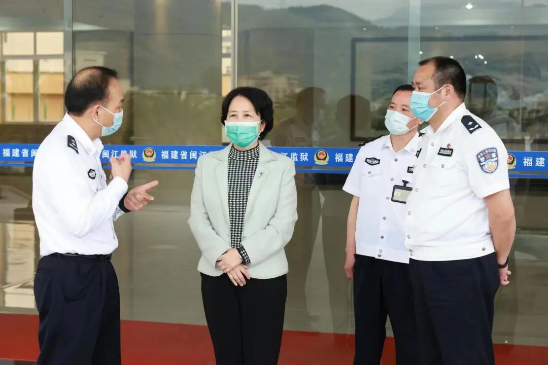 4月30日,省司法厅党委书记、厅长、省监狱管理局第一政委林玫瑰深入闽江监狱、女子戒毒所检查指导监所安全稳定工作,看望慰问值班值勤民警职工。省司法厅党委委员、省监狱管理局党委书记、局长陈由顺参加调研慰问。