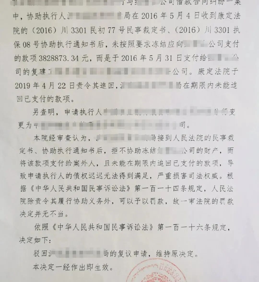 甘孜首例!拒不履行协助执行,泸定一单位被罚!
