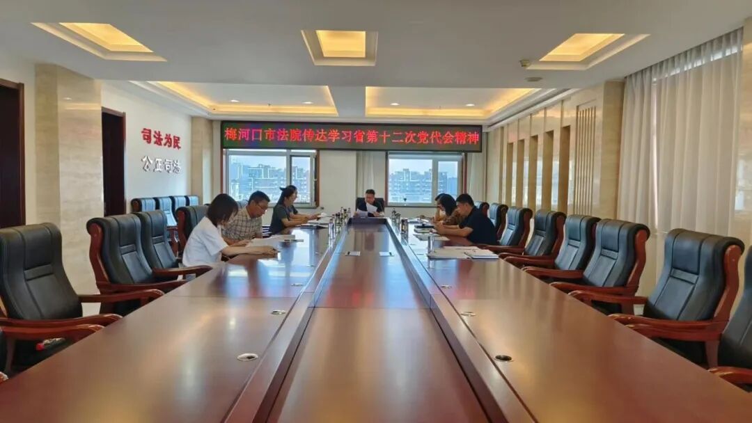 梅河口市法院召开党组会议,传达学习吉林省第十二次党代会精神。会议指出,全院法官干警要充分认识深刻领会省第十二次党代会的重大意义,进一步增强司法为民、公正司法意识,迅速掀起学习宣传贯彻省第十二次党代会精神的热潮。
