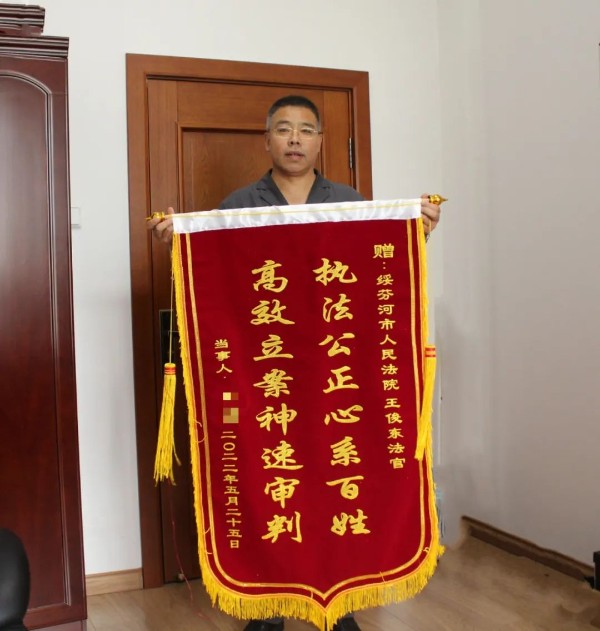 近日,宁海将一面写有“执法公正心系百姓,高效立案神速审判”的锦旗送到法官手中,表达自己的感激之情。