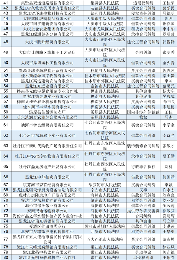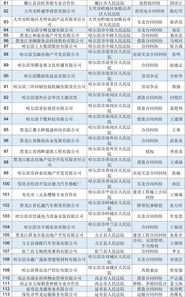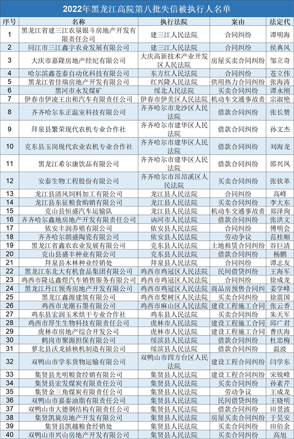 2022年黑龙江高院第八批失信被执行人名单
