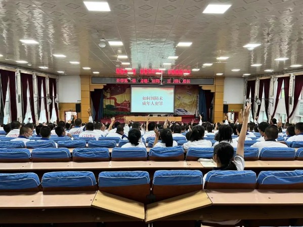 课堂上,法治副校长以“青春与法同行,三苗伴你成长”为主题,围绕预防未成年人犯罪和未成年人权益保护,以通俗易懂的语言向学生们详细讲解有关家庭保护、学校保护、社会保护、网络保护、政府保护和司法保护等保护未成年人权益的法律规定。结合具体案例细致全面介绍未成年人常见违法犯罪类型,深入分析未成年人犯罪的原因,对如何预防犯罪提出建议。在互动环节,同学们围绕未成年人如何正确有效地进行自我保护积极、踊跃提问,徐巍逐一进行解答。