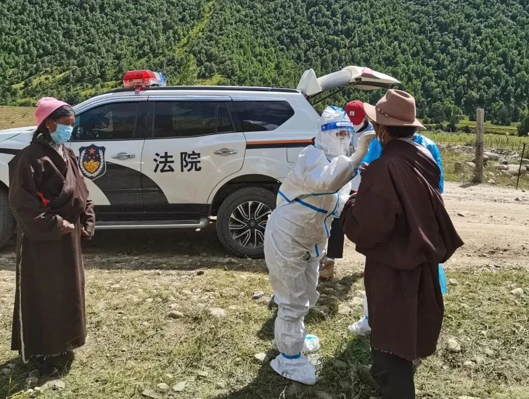 墨脱县人民法院10名干警分成两组,由党支部两名成员带队,紧急奔赴两个核酸检测点协助开展生活物资保障清点、核酸检测、扫场所码、登记身份信息、维持现场秩序等志愿服务工作。连续近7个小时的工作,没有人喊苦喊累,法院“大白”们用无畏的勇气、满腔的热情和过硬的专业知识赢得了监测点干部群众的称赞。