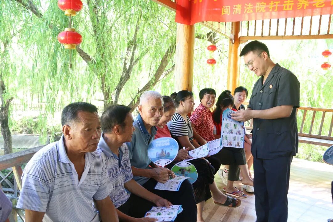 为持续做好养老服务领域防诈骗工作,提升老年人群体的识诈防骗能力,守护好老年人的“钱袋子”,8月25日,闽清法院到白中镇霞溪村开展打击整治养老诈骗法治宣传活动。