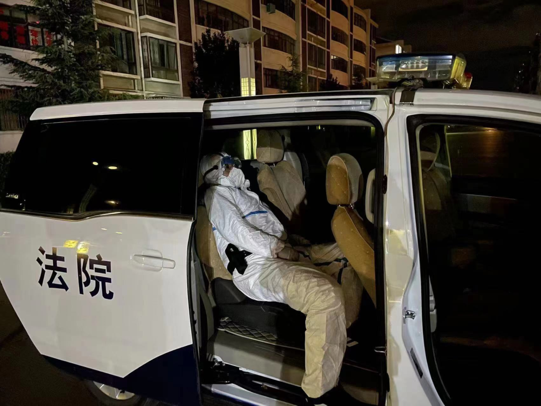 8月19日,战友们坚定地走进了单位的大门。分配防疫装备、分组、领取物资、集合……各项工作井然有序。最后,我们第一批奔赴前线的兄弟们留下了一张出征前的合影。在前往我们负责的八一社区的路上,我一直在想象着,车里可能会是沉默的、安静的,但是出乎意料的是,此刻在车上,大家似乎都十分地轻松。那一刻我心里的那点担心和害怕也就消散了大半。这本来就应是我们法院人该有的状态。