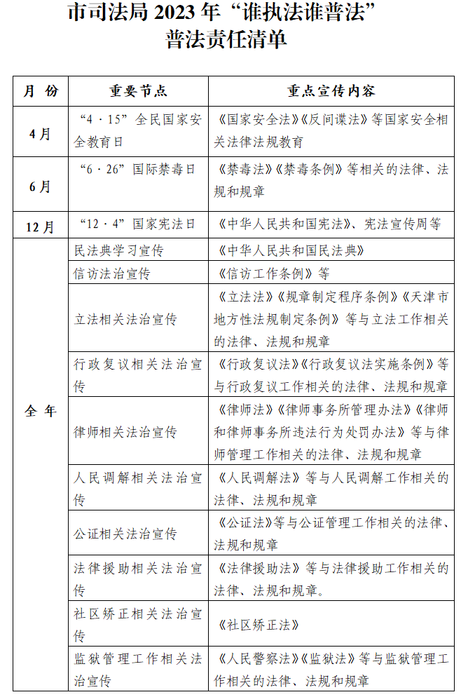 市司法局2023年“谁执法谁普法” 普法责任清单