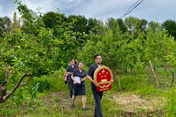 红兴隆法院双柳河人民法庭辖区五九七农场有限公司素有寒疆果都的美誉,辖区内共有果林基地5万余亩,是中国长林岛金红苹果生产之乡,国家级金红苹果标准化示范场。法院运用法治力量保障“中国绿色寒疆果都”文化品牌价值和影响力,积极为市场主体和果农提供普惠均等、便捷高效的法律服务。