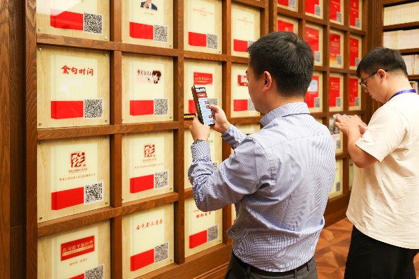 在审委会会议室观看“公众开放日”集锦。王雅文 摄