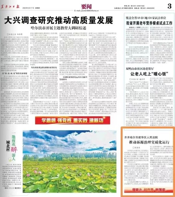 黑龙江日报刊发:提能力 转作风 抓落实 齐齐哈尔市建华区人民法院推动诉源治理实质化运行