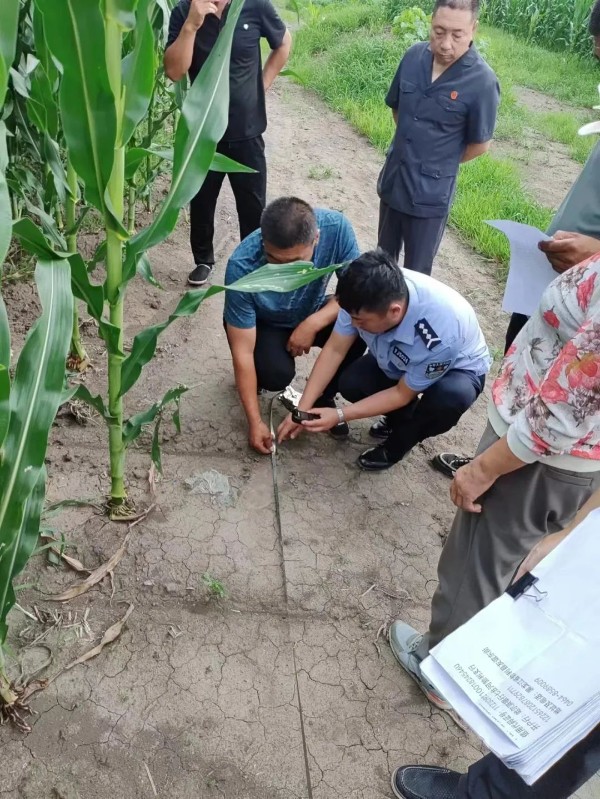 承办法官刘志远考虑到想真正解决该土地纠纷案件,就必须到实地考察并测量面积。于是便邀请了乡政府、派出所、司法所等相关部门,现场相互配合。大家兵分两路,一方拿执法记录仪全程录音录像,一方深入田间内部进行测量。