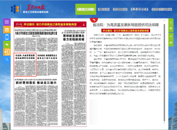 《黑龙江日报》:省法院 为高质量发展新局面提供司法保障