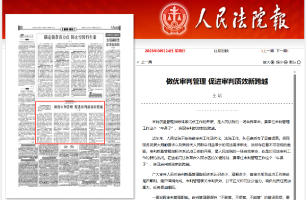 《人民法院报》刊登王斌署名文章:做优审判管理 促进审判质效新跨越