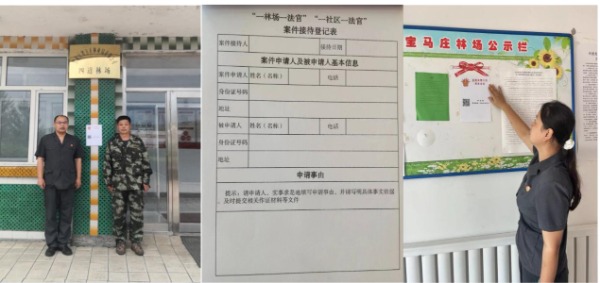 沿江法院根据林区特点,实行“按林场划片包干”工作模式,将山上林场划分为大罗密、小罗密、南山三线,分别由一名法官或者法官助理分包一个林场(社区),以点带面,实现林区法治服务全覆盖;在每个林场(社区)办公场所悬挂对接联系牌,公布法官联系方式,创建微信联系群,建立工作台账,实现对接及时、案件留痕。