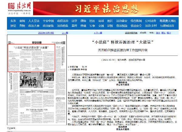 《法治日报》:“小法庭”释放诉源治理“大能量”