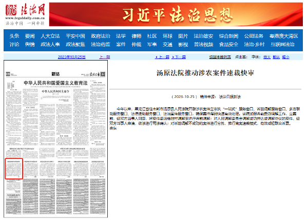《法治日报》:汤原法院推动涉农案件速裁快审