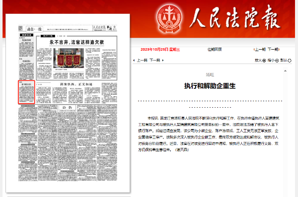 《人民法院报》报道汤旺县法院:执行和解助企重生