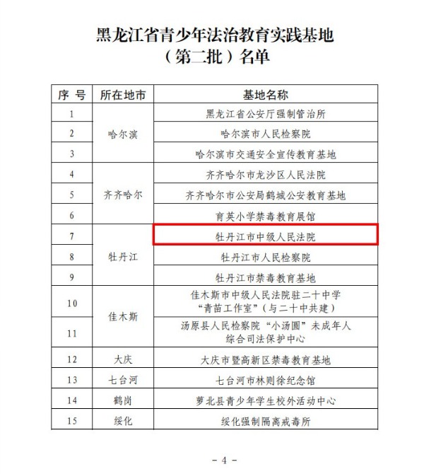 牡丹江中院:被命名为省级“青少年法治教育实践基地”