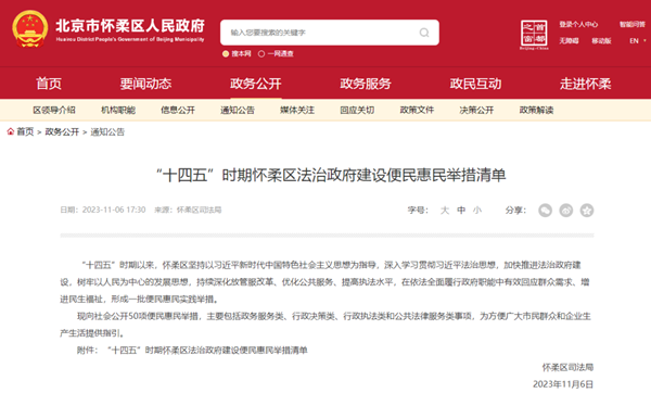 怀柔区司法局发布50项法治政府建设便民惠民举措