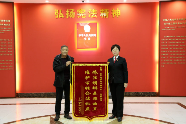 近日,一面写着“依法明辨是非曲直 维护百姓合法权益”的锦旗送到了佳木斯铁路运输法院。在将锦旗交到案件主审法官手中的那一刻,当事人吴某连声道谢,对法院公正、高效的审判工作表示由衷感谢。