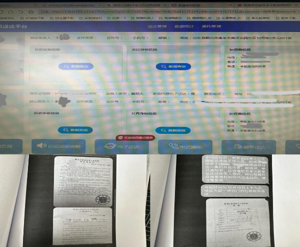 案件送达还未成功,如果公告送达,原告实现债权的日期又将顺延,承办法官通过各方努力查询到二被告的实名制电话。该电话号码也正是被告与原告联系使用的号码,经过微信搜索该电话号码也是被告使用的与原告联系的微信号。这一发现,使该案送达出现转机,工作人员向被告实名制电话发送了诉状、开庭传票等诉讼材料,又发送了保全回执。