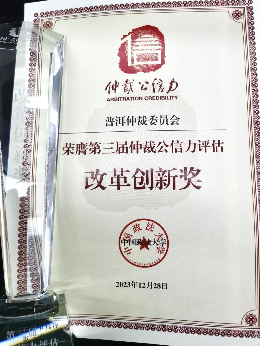 会上发布了第三届仲裁公信力评估报告并颁布了由第三方评估机构评估产生的“改革创新奖”和“高质量发展奖”两个单项奖。我省普洱仲裁委员会/澜湄国际仲裁院荣膺第三届仲裁公信力评估“改革创新奖”。同获此奖项的还有珠海、大连、海事、贵阳仲裁委员会四家机构。