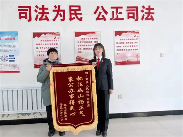 “想不到调解室工作效率这么高,我苦索偿三十年的欠款不到半个月就帮我追回了!”当事人张某怀着激动的心情将一面印有“执法如山扬正气 秉公办事得民心”的锦旗送到建三江人民法院前哨人民法庭诉前调解室,对调解员尽职尽责的工作态度和高效公正的调解结果表示感谢!