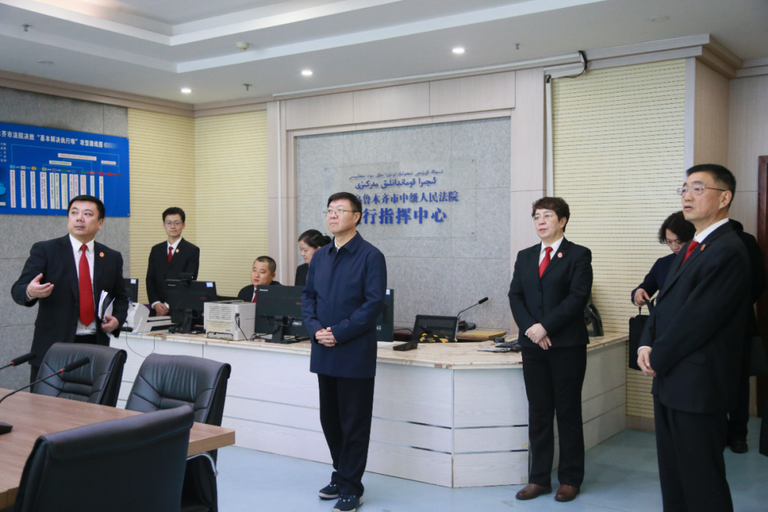 乌鲁木齐市中级人民法院党组书记崔文举,党组副书记、院长叶敏参加调研。