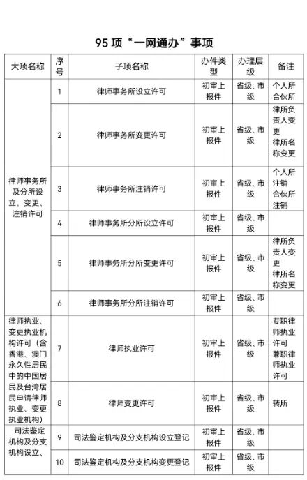 据悉,本次“一网通办”涉及的事项中,律师律所类47项,司法鉴定类19项,公证类11项,基层法律服务类16项,仲裁类2项。接下来,将针对律师事务所设立许可、律师执业和变更许可、司法鉴定机构和司法鉴定人变更登记等高频常办事项发布线上申请操作指南并向社会公布。