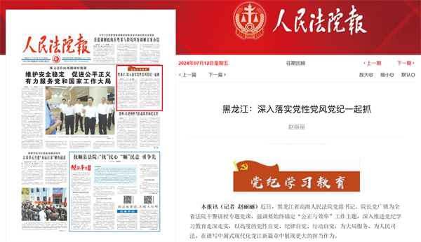《人民法院报》:黑龙江:深入落实党性党风党纪一起抓